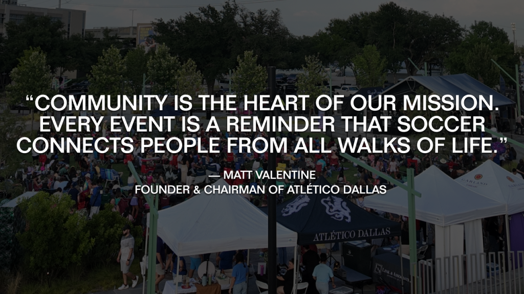“Community is the heart of our mission,” said Atlético Dallas Co-Founder Matt Valentine. “Every event is a reminder that soccer connects people from all walks of life.”